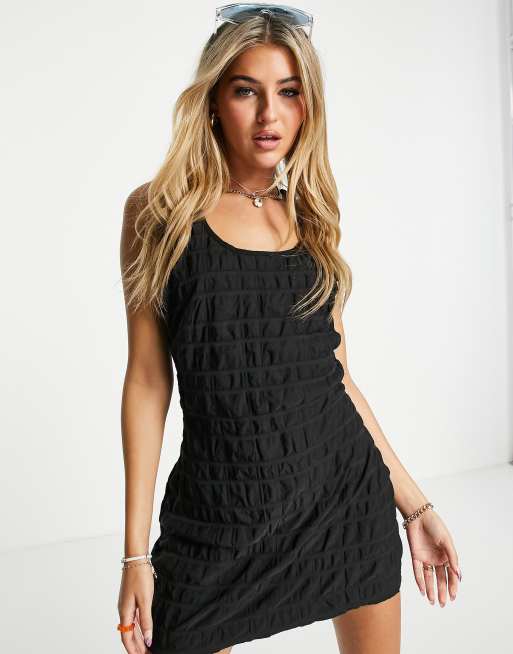 Weekday – Czarna sukienka mini z dekoltem o fasonie bokserki w kształcie litery U