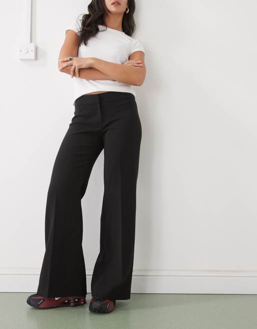 Weekday – Czarne eleganckie spodnie dzwony z szerokimi nogawkami i zakładkami z przodu