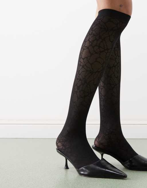 Weekday – Czarne koronkowe podkolanówki