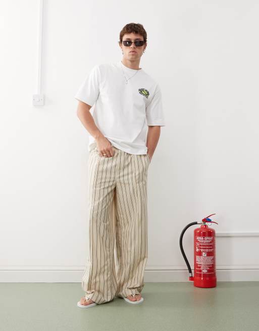 Weekday – Czarno-beżowe spodnie o luźnym kroju w paski