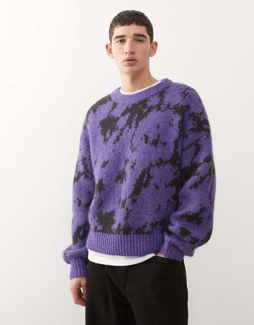 Weekday – Czarno-fioletowy sweter oversize z żakardową grafiką i domieszką wełny