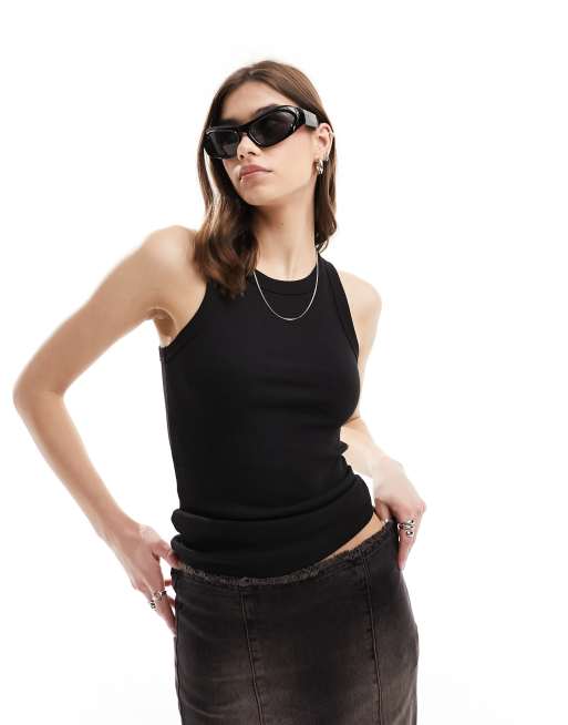 Weekday – Czarny prążkowany top o dopasowanym kroju bez rękawów