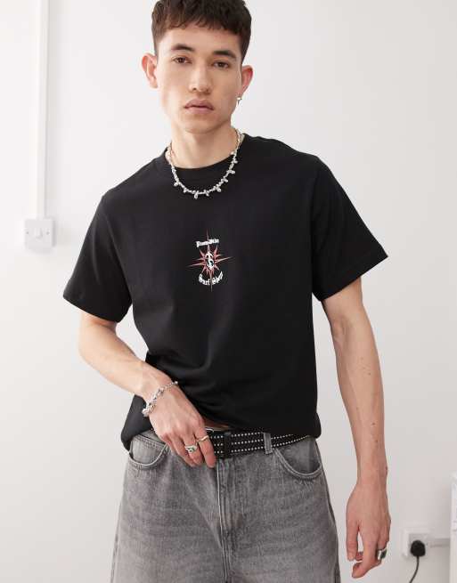 Weekday – Czarny T-shirt o pudełkowym kroju z grafiką z napisem Surf Shop