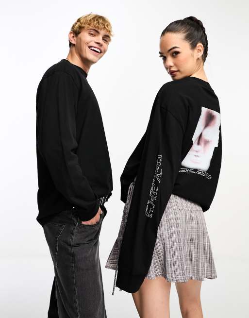 Weekday – Czarny T-shirt unisex oversize z długimi rękawami i grafiką – tylko w ASOS