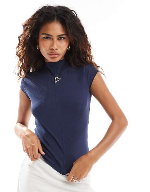 Weekday – Dea – Niebieski T-shirt z półgolfem
