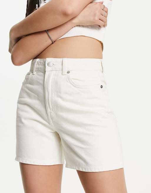 Weekday – Eya – Jeansowe szorty bermudy z podwyższonym stanem w kolorze ecru