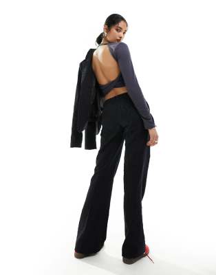 Weekday – Keela – Czarne spodnie w żakardowe groszki, część zestawu