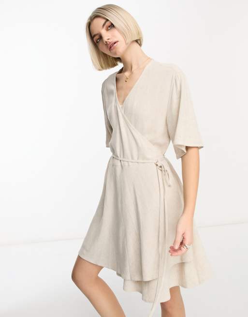 Weekday – Kimberly – Kopertowa sukienka mini z mieszanki lnu w beżowym kolorze