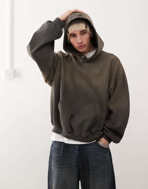 Weekday – Leon – Szara gruba bluza oversize z kapturem z dżerseju z efektem sprania