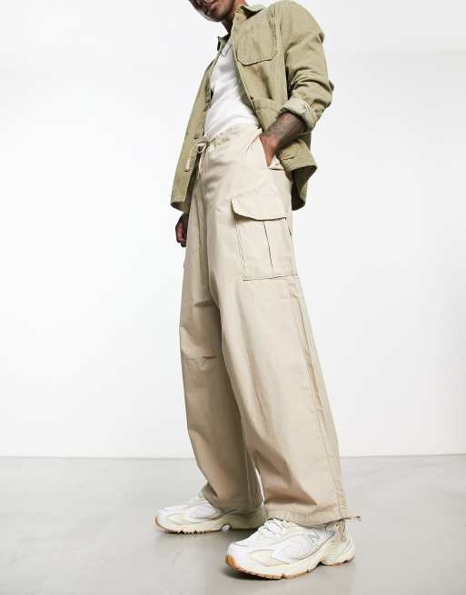 Weekday – Mats – Obszerne beżowe spodnie bojówki