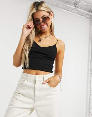 Weekday – Mitzi – Czarny prążkowany top na wąskich ramiączkach