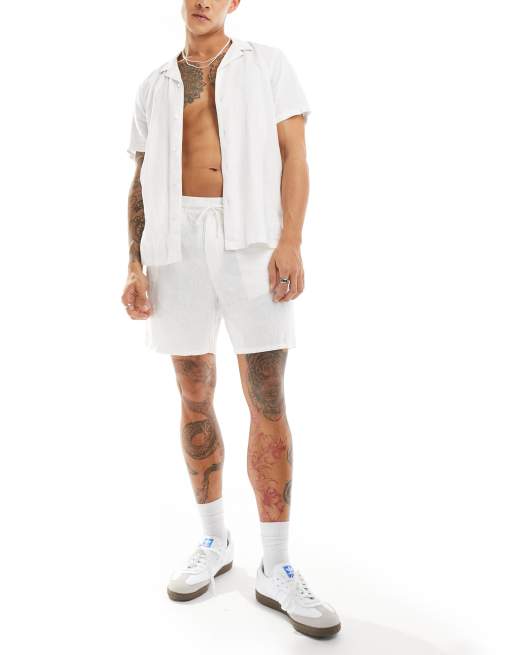 Weekday – Olsen – Szorty o regularnym kroju z mieszanki lnu w kolorze złamanej bieli