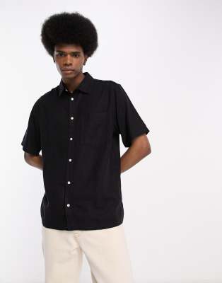 Weekday – Randy – Czarna koszula z krótkimi rękawami