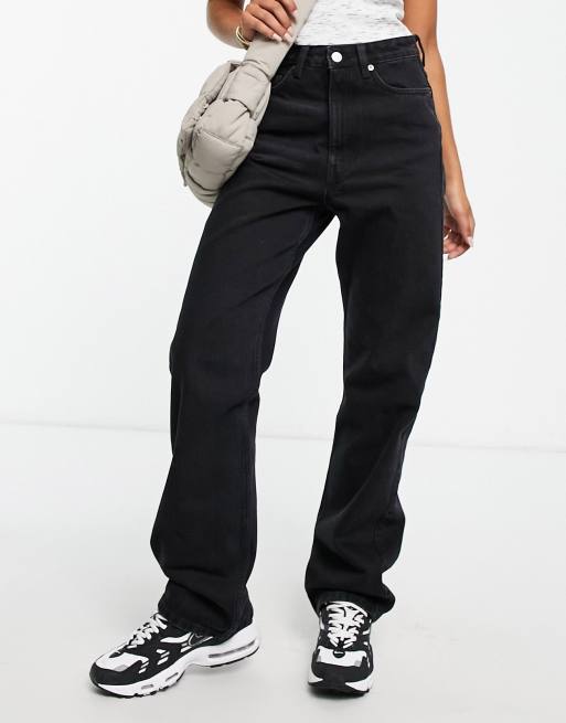 Weekday – Rowe – Czarne jeansy z prostymi nogawkami i bardzo wysokim stanem