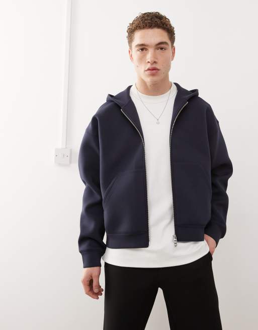 Weekday – Simon – Granatowa zapinana na zamek bluza z kapturem z materiału w stylu scuba