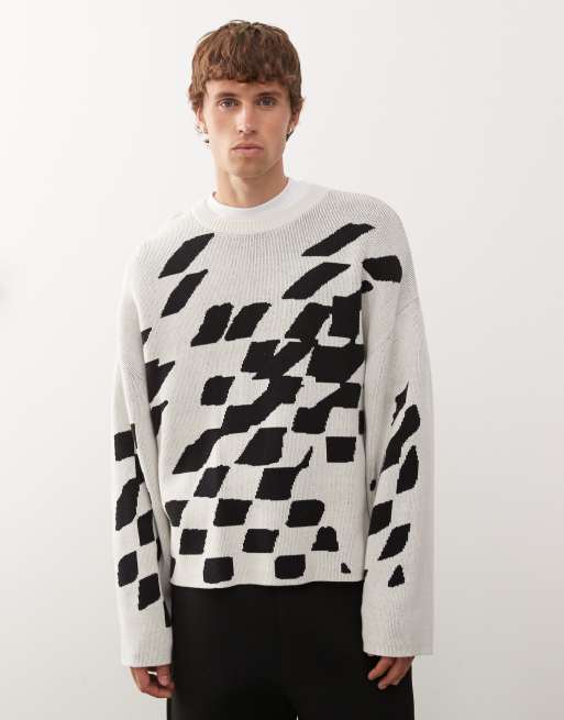 Weekday – Sweter w kolorze złamanej bieli ze wzorem