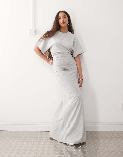 Weekday – Szara melanżowa sukienka maxi z dżerseju z marszczeniem z boku
