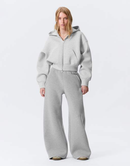 Weekday – Szare melanżowe spodnie dresowe z szerokimi nogawkami z materiału w stylu scuba