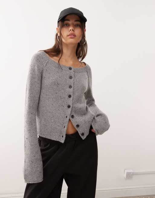 Weekday – Szary kardigan z odsłoniętymi ramionami z mieszanki nakrapianej wełny