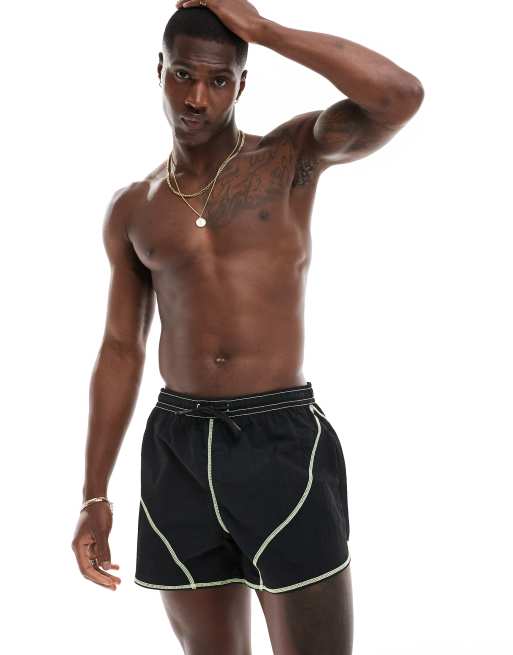 Weekday – Tan – Czarne szorty kąpielowe z ozdobnymi szwami