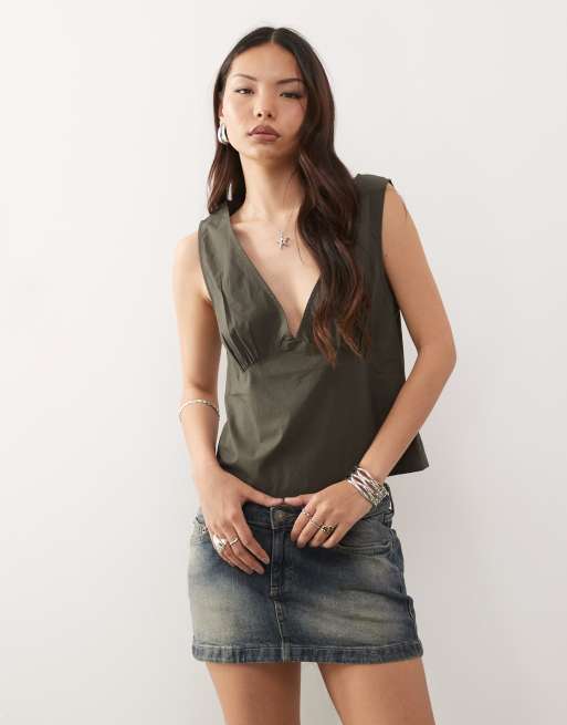 Weekday – Top z dekoltem w kształcie litery V w odcieniu złamanej czerni
