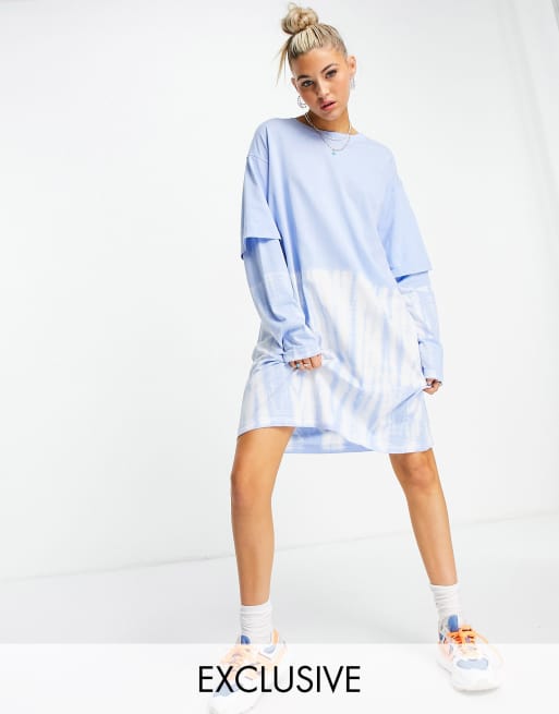 Weekday – Tracy – Niebieska sukienka T-shirtowa z długim rękawem i efektem tie dye