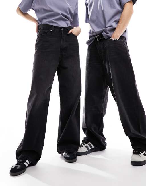 Weekday Unisex – Astro – Jeansy o luźnym kroju z szerokimi nogawkami w spranym czarnym kolorze