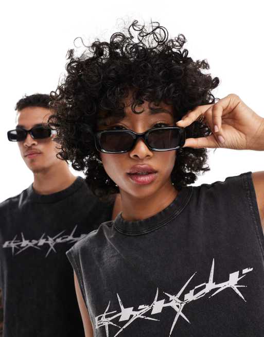 Weekday Unisex – Cruise – Czarne kwadratowe okulary przeciwsłoneczne