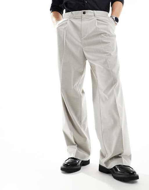 Weekday – Uno – Dopasowane spodnie o luźnym kroju w beżowym melanżowym kolorze