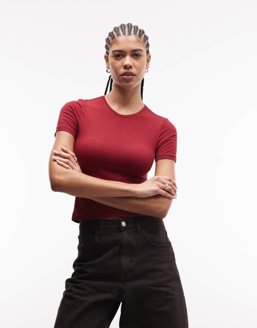 Weekday – Wiśniowoczerwony dopasowany T-shirt