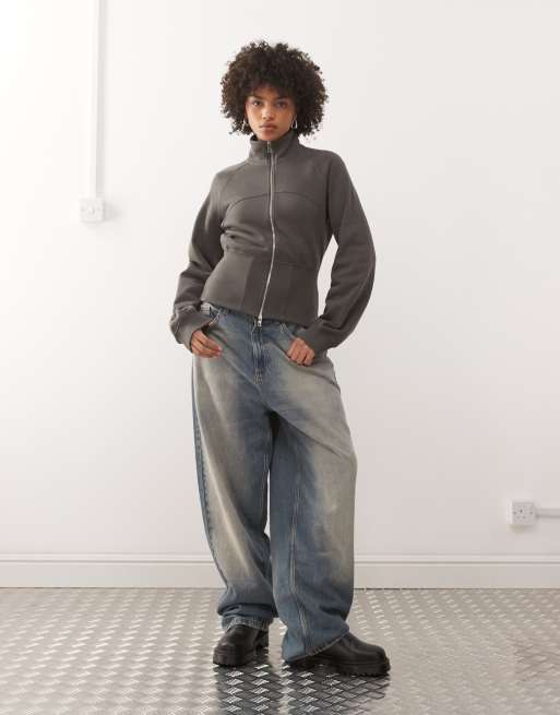 Weekday – Zapinana na zamek taliowana ciemnoszara bluza z golfem