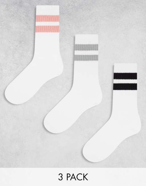 Weekday – Zestaw 3 par białych skarpetek z kolorowymi paskami