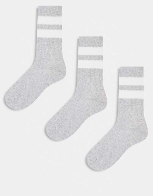 Weekday – Zestaw 3 par szarych sportowych skarpetek z paskami