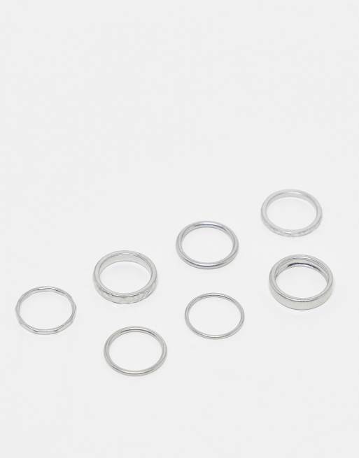 Weekday – Zestaw 7 różnych pierścionków w kolorze srebra