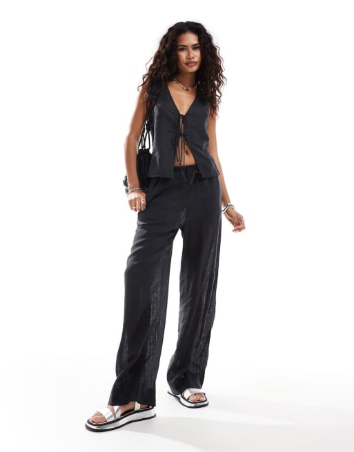 Weekday – Zestaw o splocie pointelle: podkoszulek i spodnie