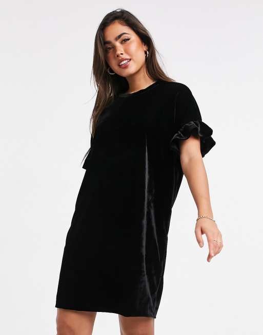 Whistles – Czarna aksamitna sukienka mini z rękawami z falbanką