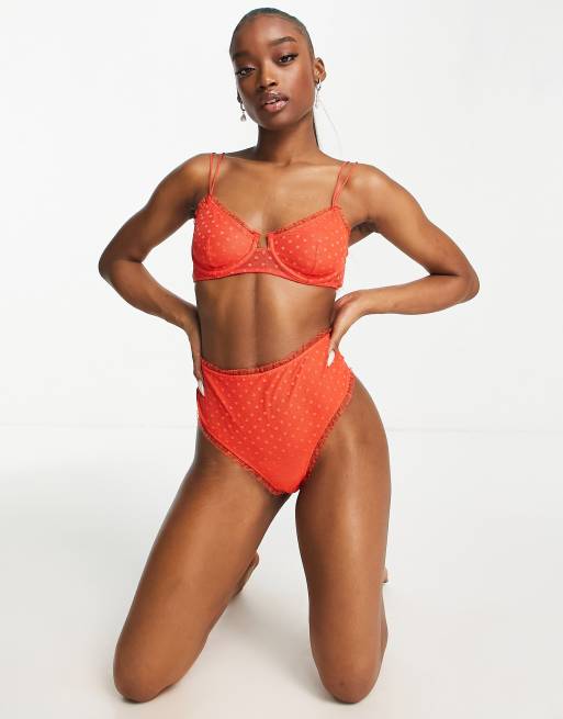 Wild Lovers – Jane – Czerwone figi z podwyższonym stanem i lamówką z falbanką z siateczki dobby