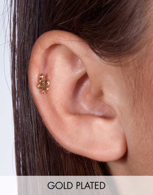 With Bling – Kolczyk do piercingu z motywem węża powlekanego 18-karatowym złotem i tytanowym wkrętem 6 mm i 8 mm