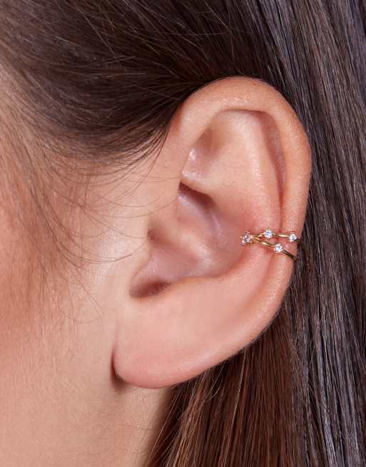 With Bling – Platerowana 18-karatowym złotem nausznica z kryształkami