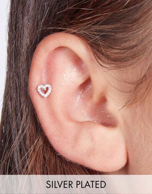 With Bling – Posrebrzany mały kolczyk w kształcie serca z kryształkami i tytanowym pręcikiem 6 mm