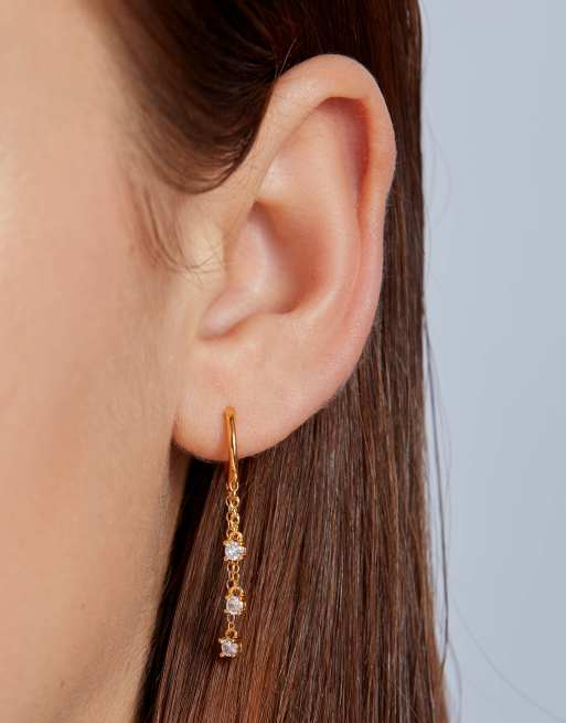 With Bling – Pozłacany kolczyk-koło o średnicy 10 mm z trzema zawieszkami z kryształkami
