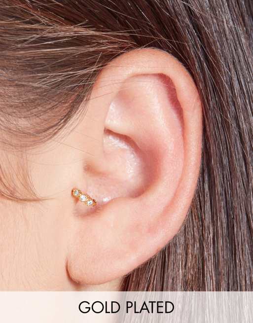 With Bling – Pozłacany mały kolczyk do piercingu 6 mm z potrójnym kryształkiem
