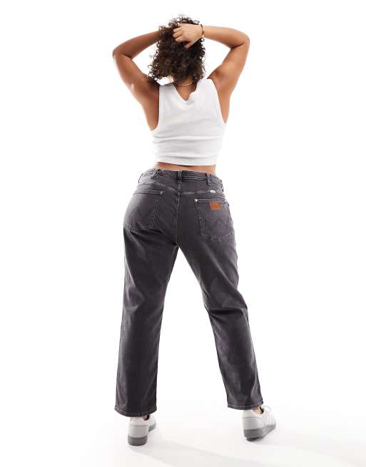 Wrangler Plus – Jeansy z prostymi nogawkami i podwyższonym stanem w spranym czarnym kolorze