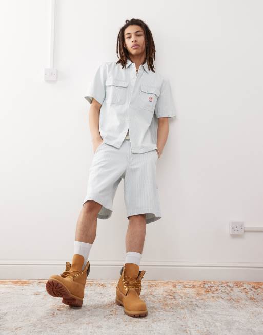Wrangler – Casey Jones – Jasnoniebieskie szorty jeansowe typu carpenter w paski, część zestawu