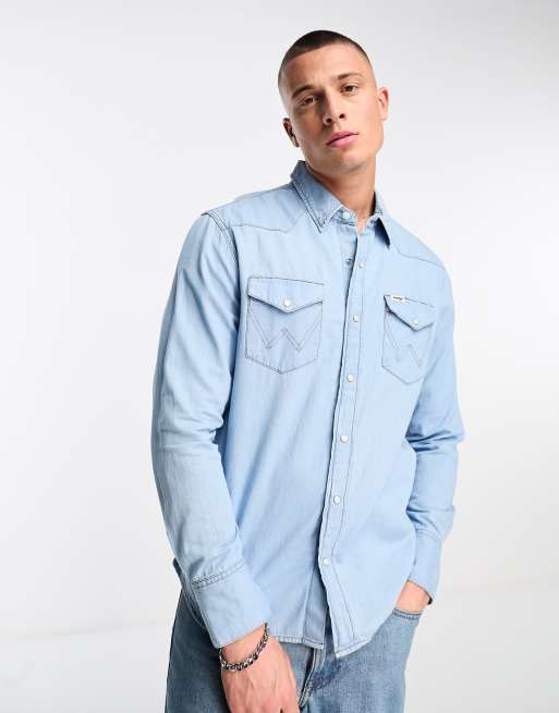 Wrangler – Jasnoniebieska kowbojska koszula z długim rękawem