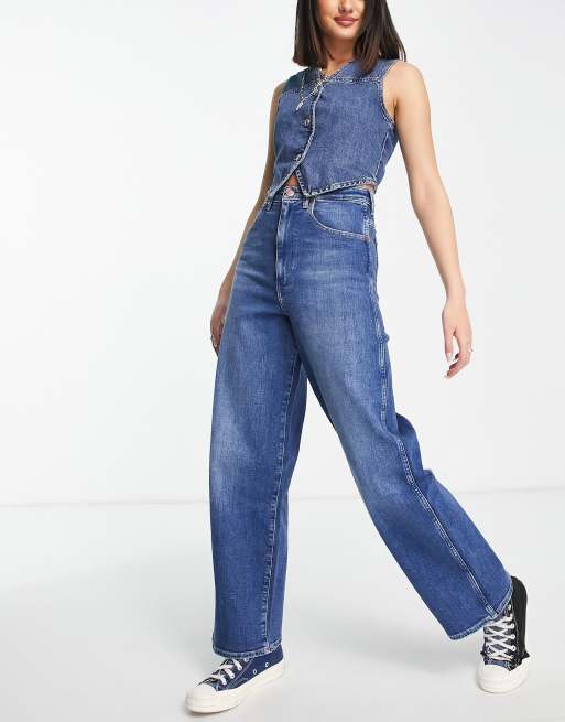 Wrangler – Niebieskie jeansy z wysokim stanem i szerokimi nogawkami o beczkowym kroju