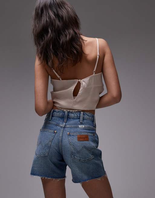 Wrangler – Niebieskie szorty jeansowe o długości 5 cali z przetarciami