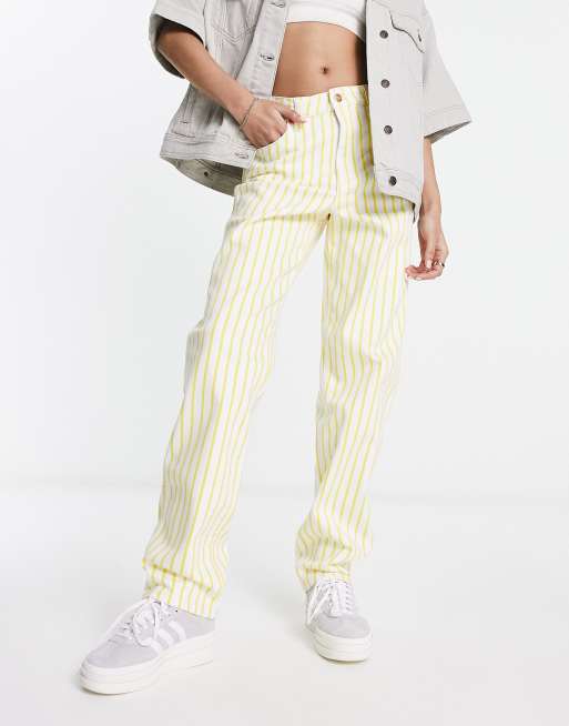 Wrangler – Żółte mom jeans w paski o prostym kroju