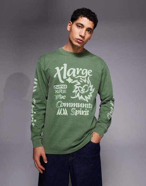 Xlarge – Oliwkowy farbowany T-shirt z długimi rękawami i grafiką z logo