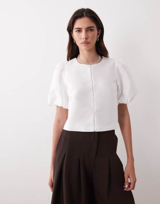 YAS – Biały top z tkaniny z obszernymi rękawami i zapięciem z przodu